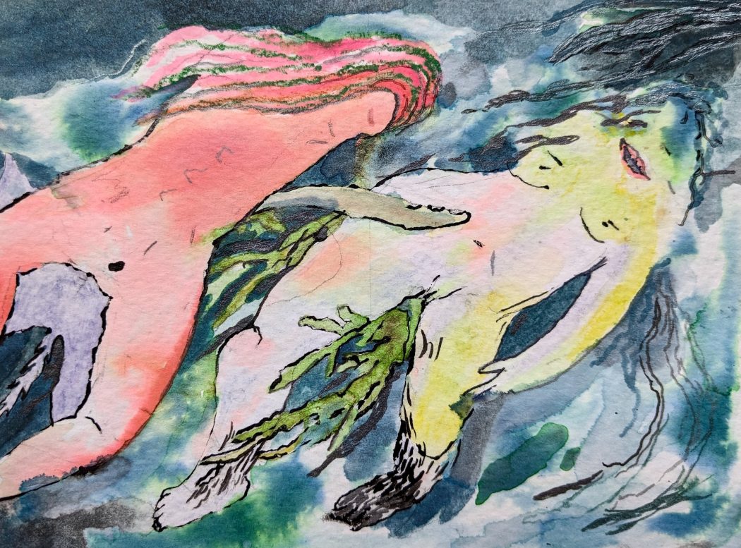 We kiss and slowly undress, as we impatiently caress and taste each other’s bodies like two starved pilgrims at the end of their long walking day. We are both sweating a lot. Our bodies are hot with desire. I feel like a scallop floating in the ocean, soaked in the holy water of desire and touch.