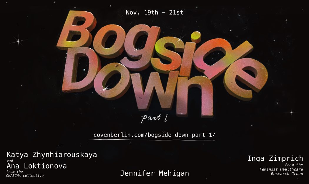 Für bogside down Teil 1 arbeiten wir mit der irisch-singapurischen Künstlerin und Schriftstellerin Jennifer Mehigan, dem belarusischen Künstler*innen- und Aktivist*innenkollektiv CHASCHA und der Berliner Feministischen Gesundheitsrecherchegruppe (FGRG) zusammen. Gemeinsam mit ihnen werden wir die fast vergessenen Grabsteine lesbischer Künstler*innen in den irischen Sümpfen heraufbeschwören, mehr über BOGNA, ein aktivistisches Healing Retreat in Belarus, erfahren und uns mit alternativen radikalen Therapiepraktiken beschäftigen. Und wieder einmal bitten wir euch uns anzuschließen, in den Tiefen des Schlamms.