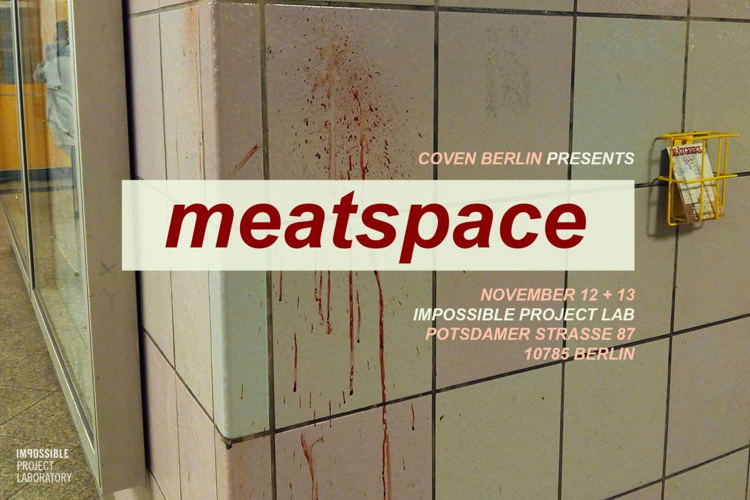 Meatspace will present the work of artists of various disciplines in the form of talks, performances, and visual art with a common focus on the physical realities of the body. The event will take place 12th-13th November 2016 at The Impossible Project Lab (Potsdamer Str. 87, Berlin, Germany).