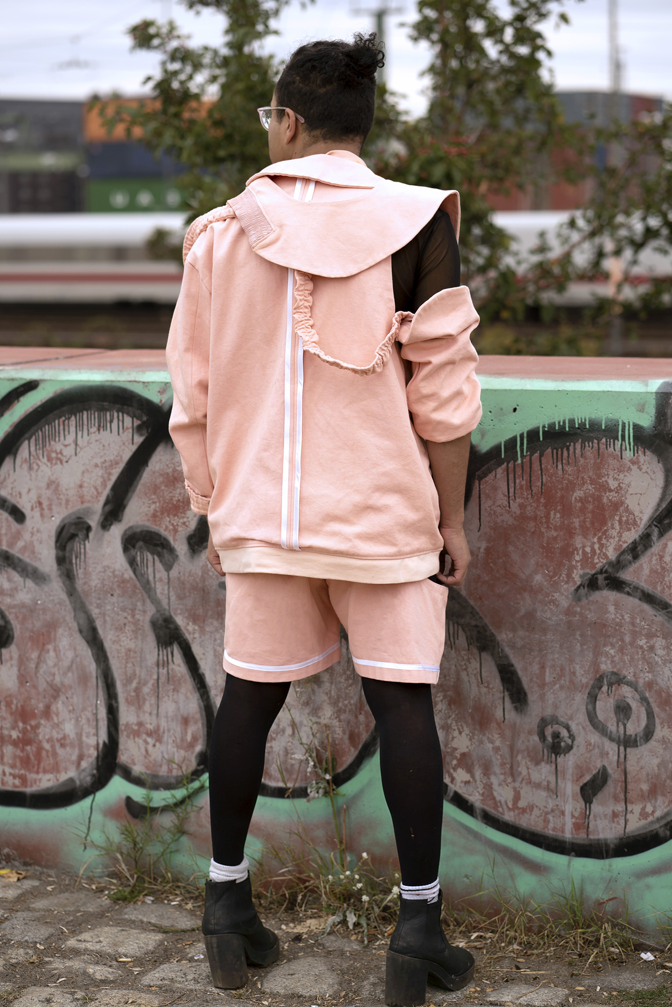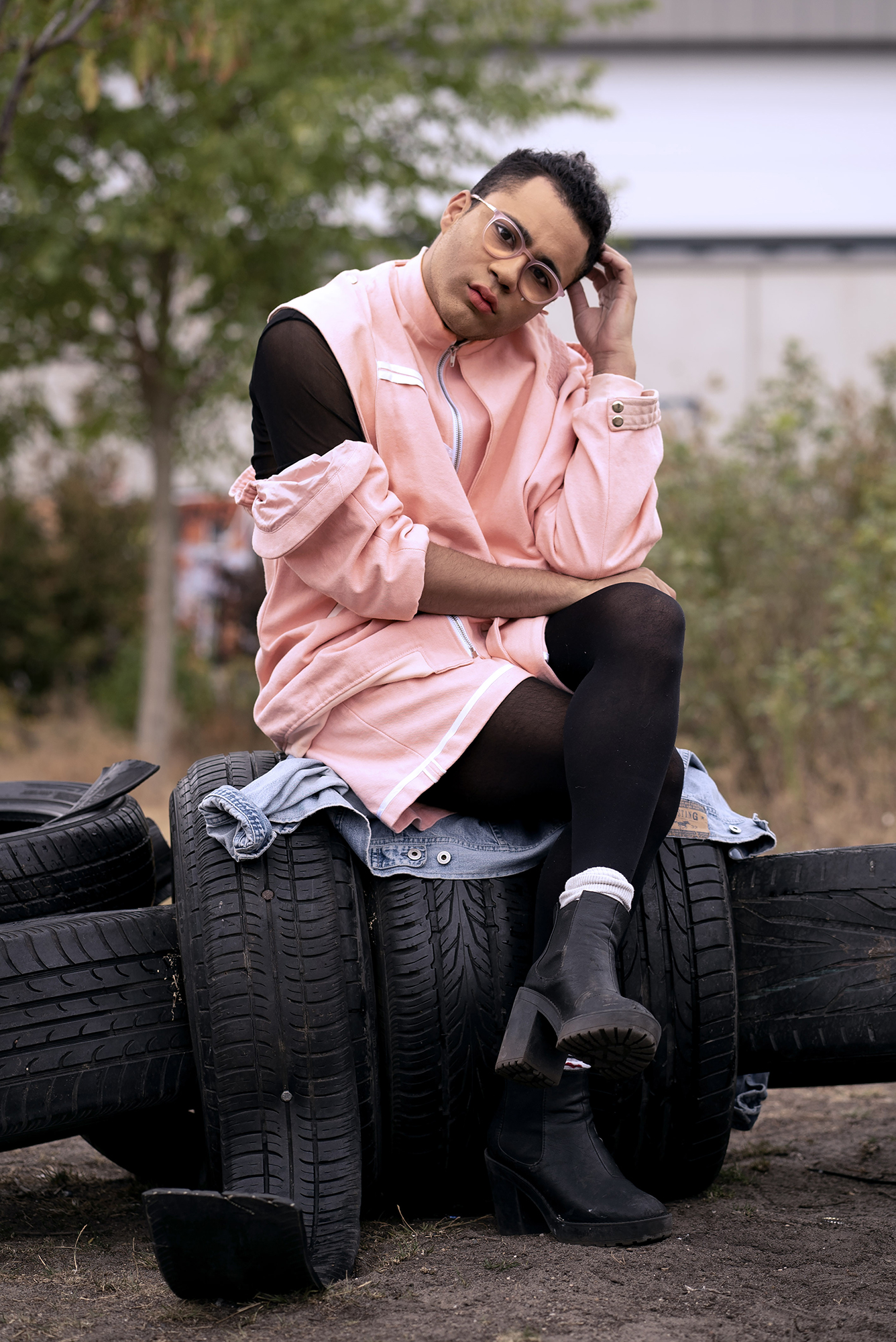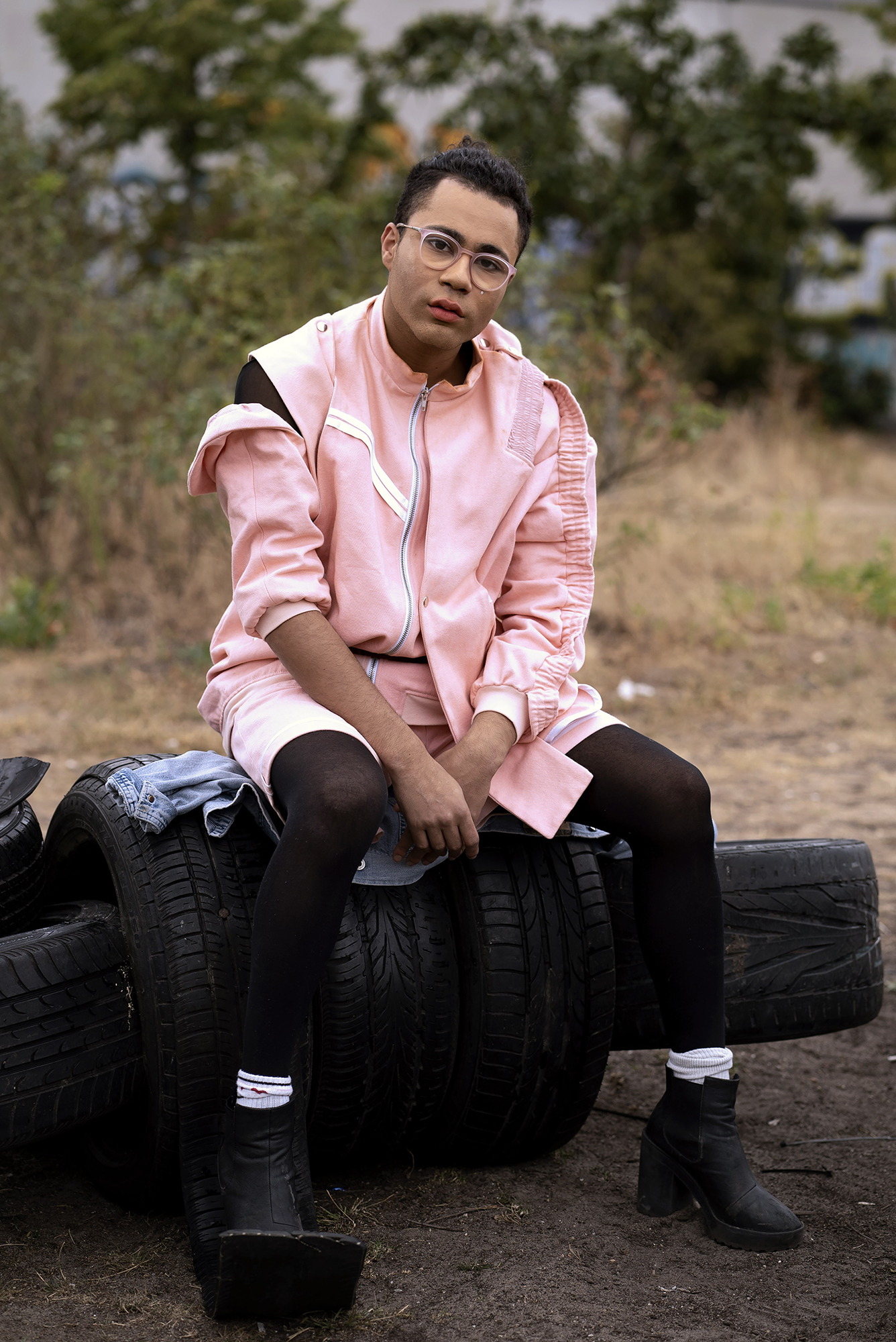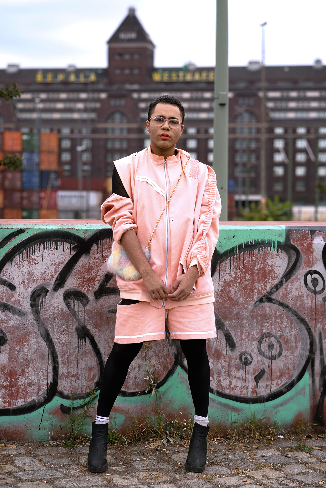 Travis Alabanza’s clothing for this photo shoot was provided by Don Aretino, a local Berlin designer.